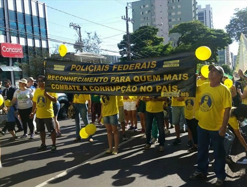 Grupo com cerca de 100 policiais federais estão nas ruas de Campo Grande em protesto. Eles defendem que não são favoráveis ao impeachment da presidente da República Dilma Rousseff (PT), mas sim ao combate à corrupção e divulgam o lançamento da PEC (Proposta de Emenda Constitucional) 361 que defende reestrutura da carreira da PF por meio de meritocracia.